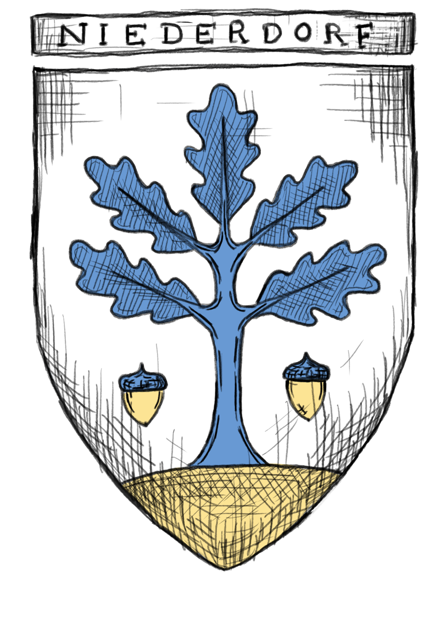 Niederdorf liegt am Ausgang des Tals. Es ist etwas tiefer gelegen als Oberdorf. Die kleinen Häuser scharen sich um eine uralte Eiche in der Mitte des Dorfplatzes, das Wahrzeichen Niederdorfs. Daneben steht eine kleine Kapelle. An den Hängen hinter dem Dorf grasen Kühe, deren Käse im ganzen Ort bekannt ist. Die Nachmittagssonne scheint hier dank der Lage am Südhang länger als in Oberdorf und der Roggen gedeiht hier je nach Wetterlage trotz der Höhe ganz passabel. Der Bach der von Oberdorf herkommt, wird hier breiter und betreibt eine kleine Mühle, die der Stolz des Dorfes ist.